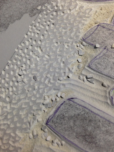 In fact it was wretched. The upper portion got TOO gray, my background stippling was distracting. The ochre was too bright, and along the left side of the image it was all too dark. It was just going to have to go. I was, in a word,